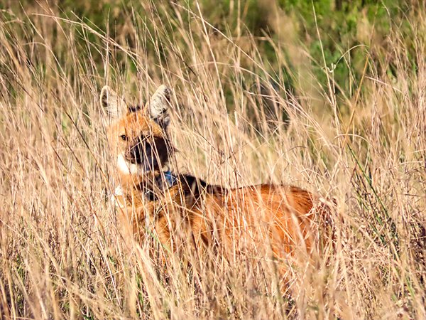 Desde que fue liberada como parte del proyecto de reintroducción del aguará guazú en la Reserva El Potrero, continuamos monitoreando a Chamarrita a través del collar satelital que lleva puesto. Esta herramienta nos envía datos valiosos sobre sus desplazamientos, permitiéndonos comprender cómo se adapta a la vida silvestre y cómo utiliza los diferentes ambientes.