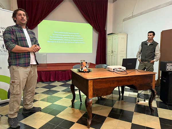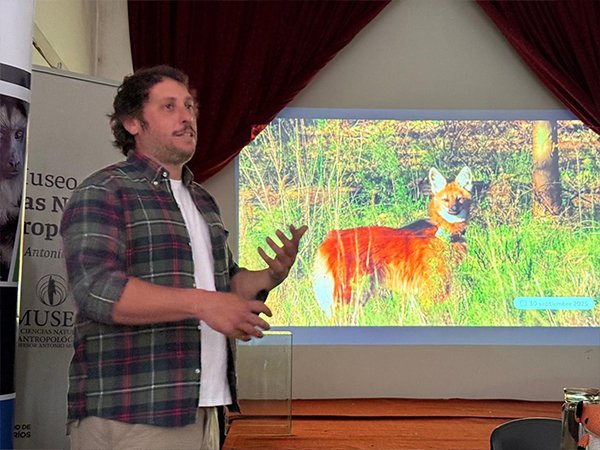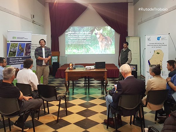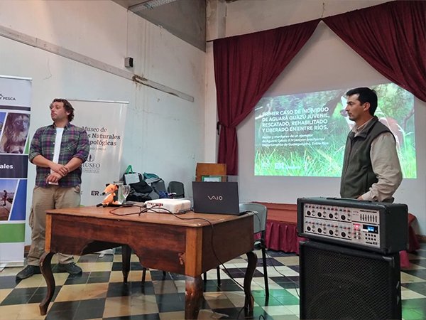 En representación de la Reserva, Ladislao Foldesi y Daniel Ávalo compartieron la experiencia de rescate, rehabilitación, liberación y monitoreo de Chamarrita, la hembra de aguará guazú que regresó a la vida silvestre en nuestra área protegida.