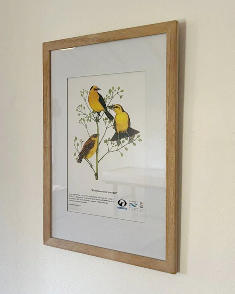 La Reserva El Potrero fue distinguida por Aves Argentinas y el Centro de Ecolog铆a Aplicada del Litoral (CECOAL / CONICET) por su compromiso con la conservaci贸n del Tordo Amarillo, recibiendo un hermoso cuadro ilustrado por Bel茅n Dri.